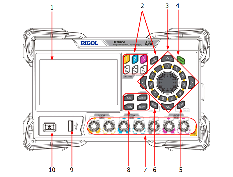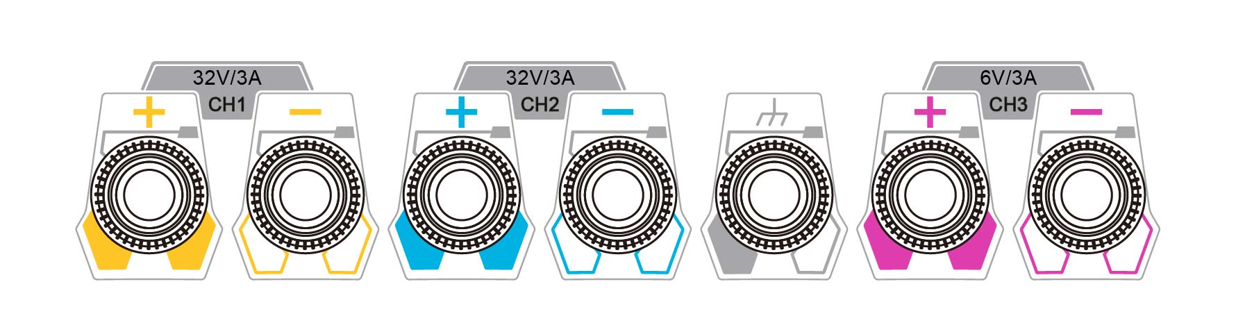 通道输出端子:用于输出通道的电压和电流。不同型号可输出的电压电流范围请参考文档概述 。