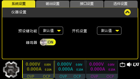 电压/电流设置值 | CH1/CH2/CH3:0 V/0.1 A |