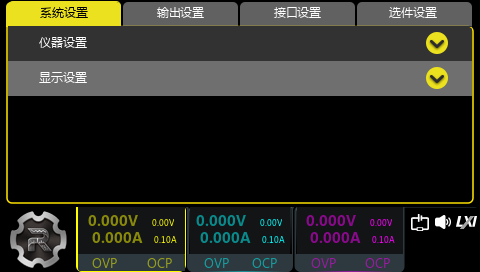 ,进入如下图所示界面。您可以进行系统设置、输出设置、接口参数设置和选件设置。