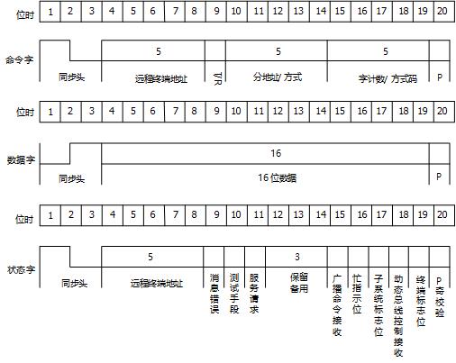 1553B总线命令字、数据字和状态字格式如下图所示。