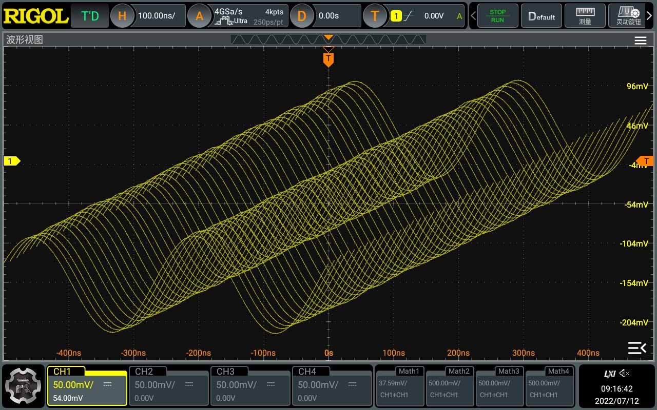 All DHO4000 series oscilloscopes are equipped with Rigol's second generation "Centaurus" chipset, which provides 12-bit support.This allows the DHO4000 series oscilloscopes to capture waveforms 16 times more accurately and clearly than their predecessors' 8-bit counterparts.