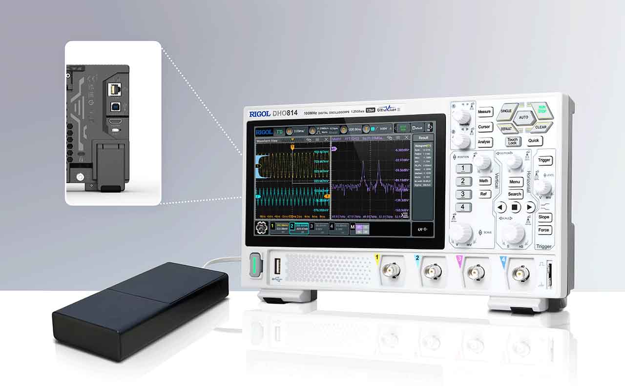Designed with a Type-C power interface, the DHO800 can be powered by just a portable power source, enabling on-site testing.