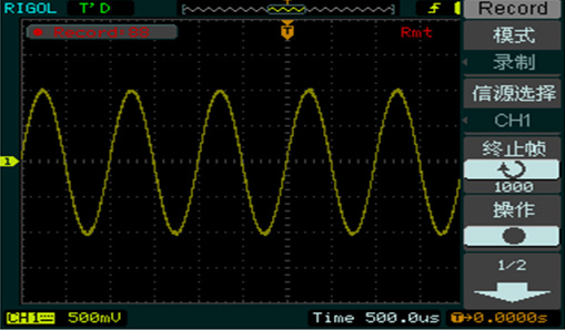 The waveform recording function of the DS1000D/E/U series can not only record the input waveforms of 2 channels, but also record the waveforms output by the Pass/Fail detection. It can record up to 1000 frames, and better waveform analysis results can be achieved through the playback and save functions.