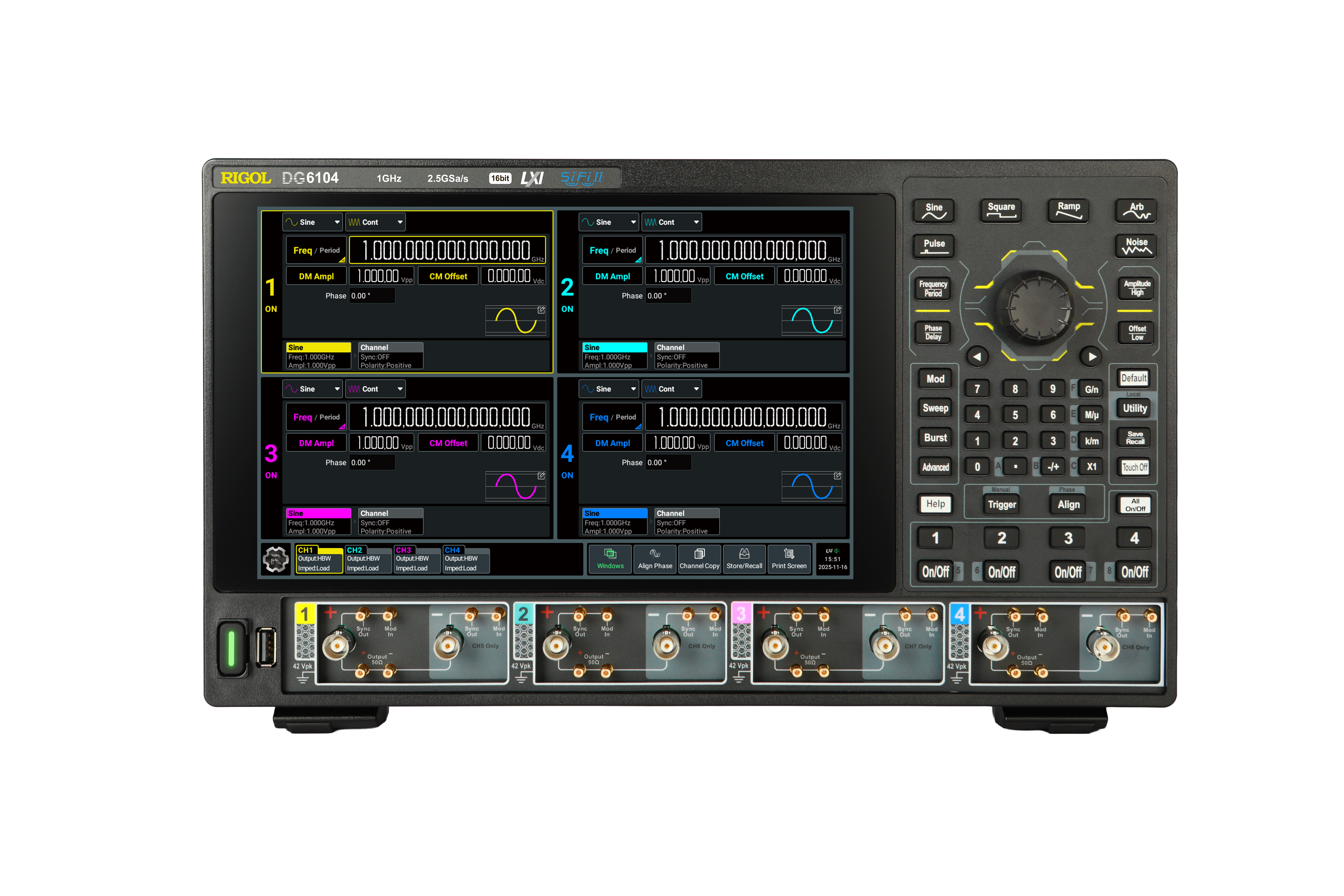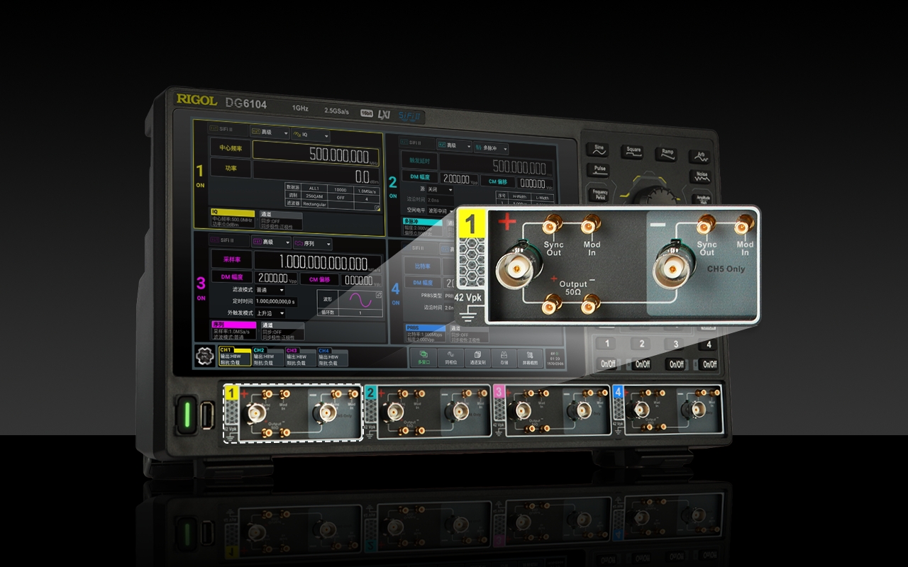 DG6000은 최대 1 GHz 사인파 출력과 16비트 수직 해상도를 통해 넓은 주파수 범위와 높은 파형 정확도를 동시에 제공합니다.