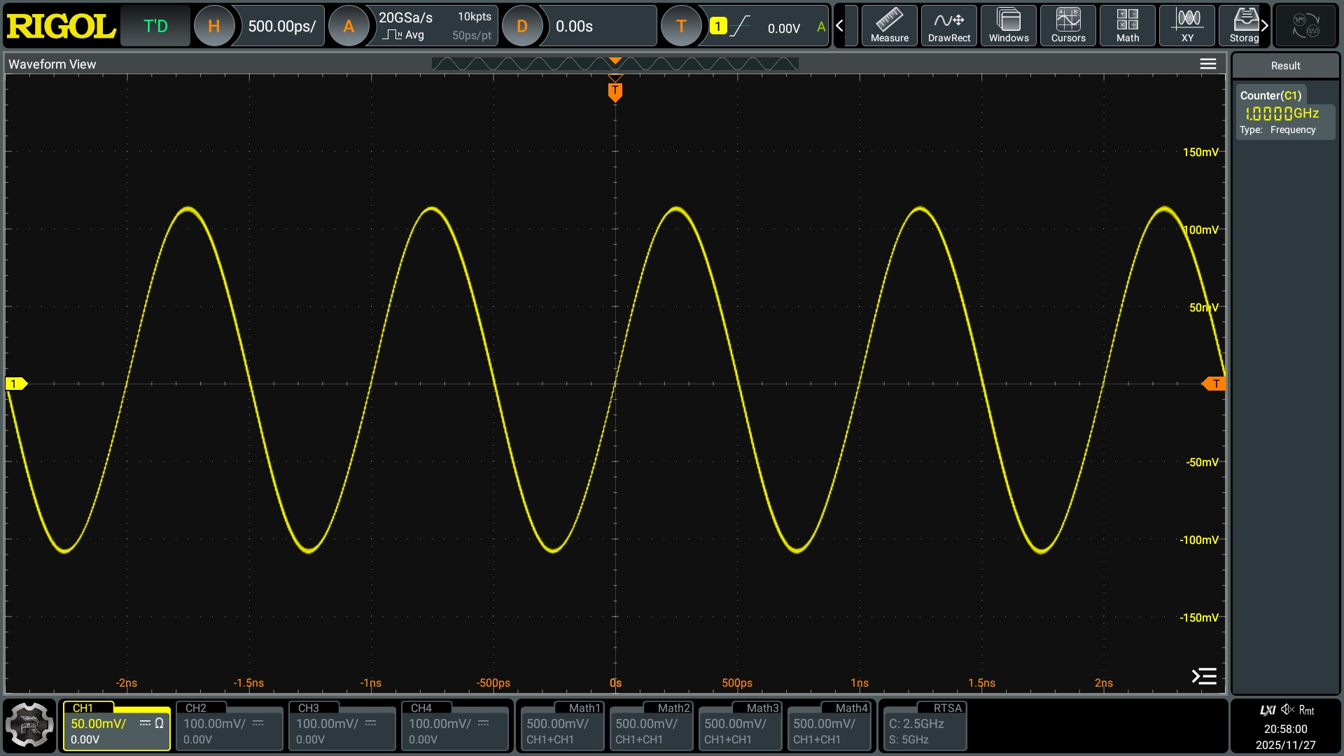 - 샘플 속도: 2.5 GSa/s