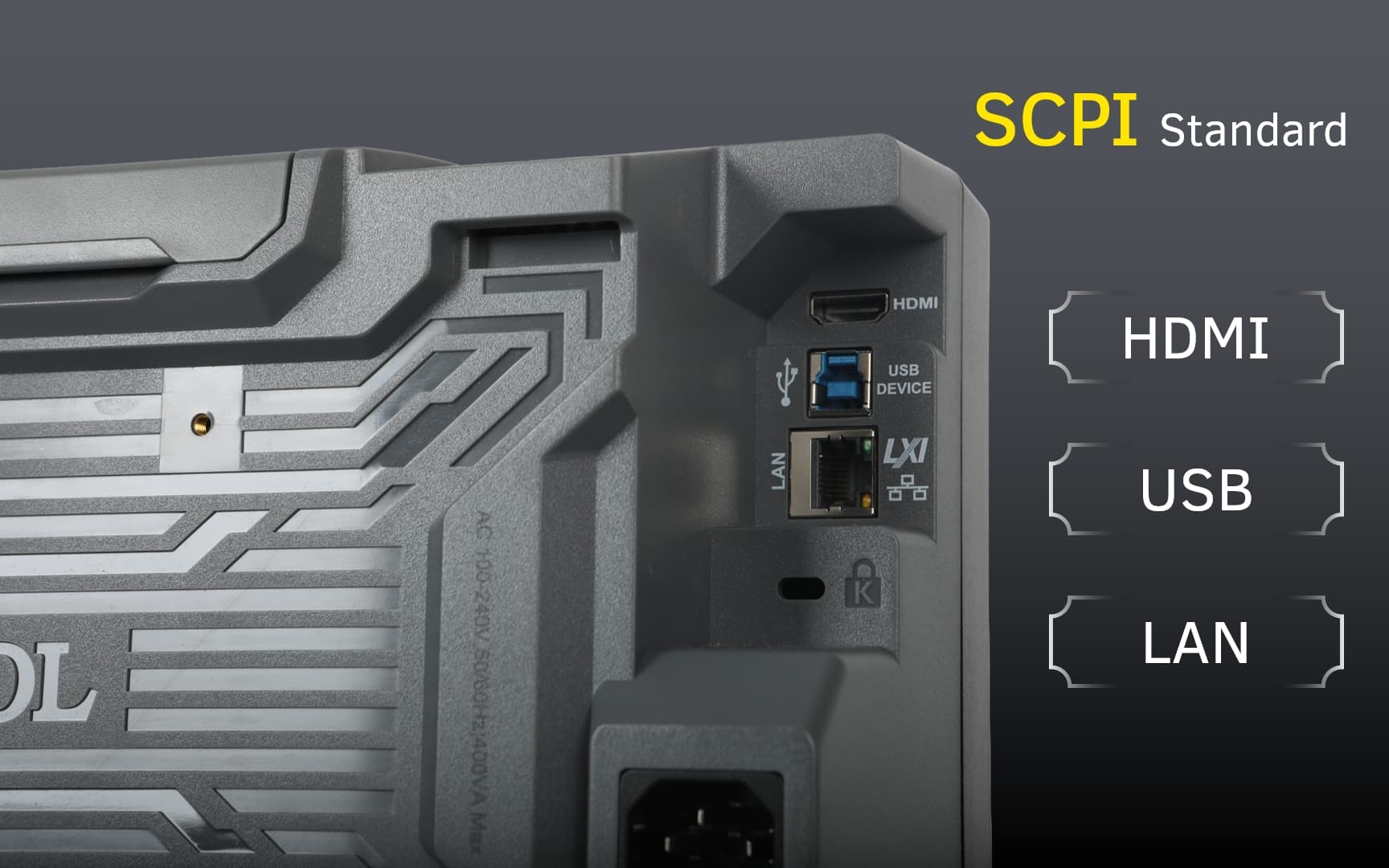 - 풍부한 인터페이스와 프로그래머빌리티: HDMI, LAN, USB 표준 제공 및 완전한 SCPI 명령세트/드라이버 지원으로 자동화 테스트 시스템을 신속 구축.