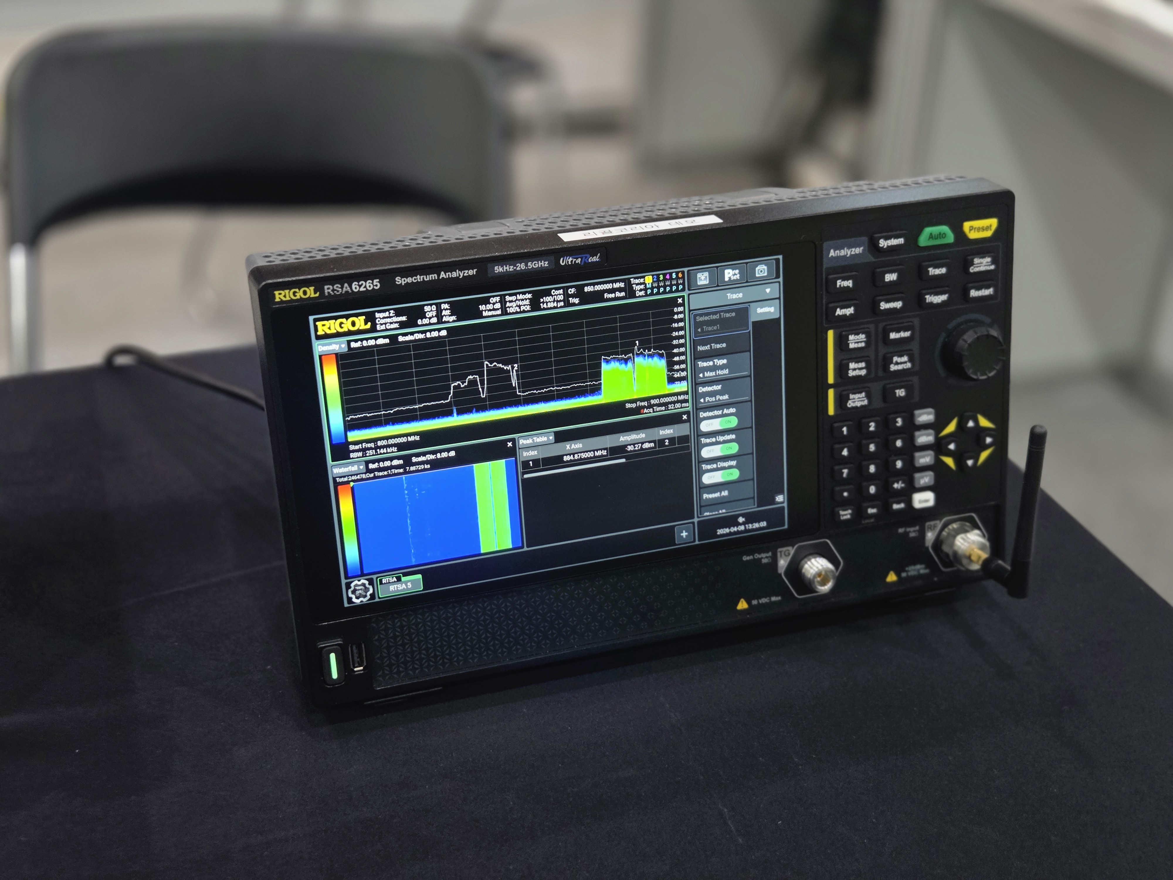 RSA6265는 최대 26.5GHz 대역을 지원하는 스펙트럼 분석기로, RF 및 무선 통신 환경에서의 신호 분석에 활용됩니다.
