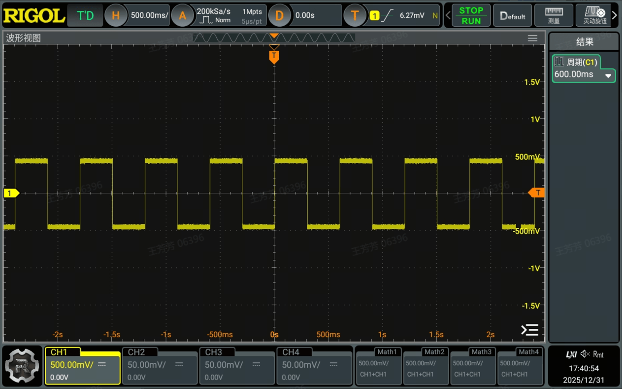 备注:示波器中测得周期为600ms,当前AWG输出采样率为5GSa/s,此时通过输出采样率x周期时间得出当前波形的点数为3,000,000,000pts