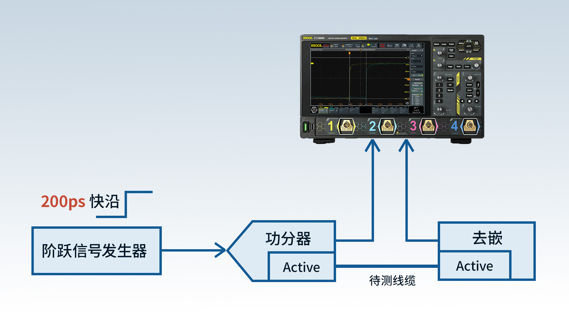 使用一台能够产生快速上升沿(Rise Time < 200ps)的阶跃信号发生器作为基准源。