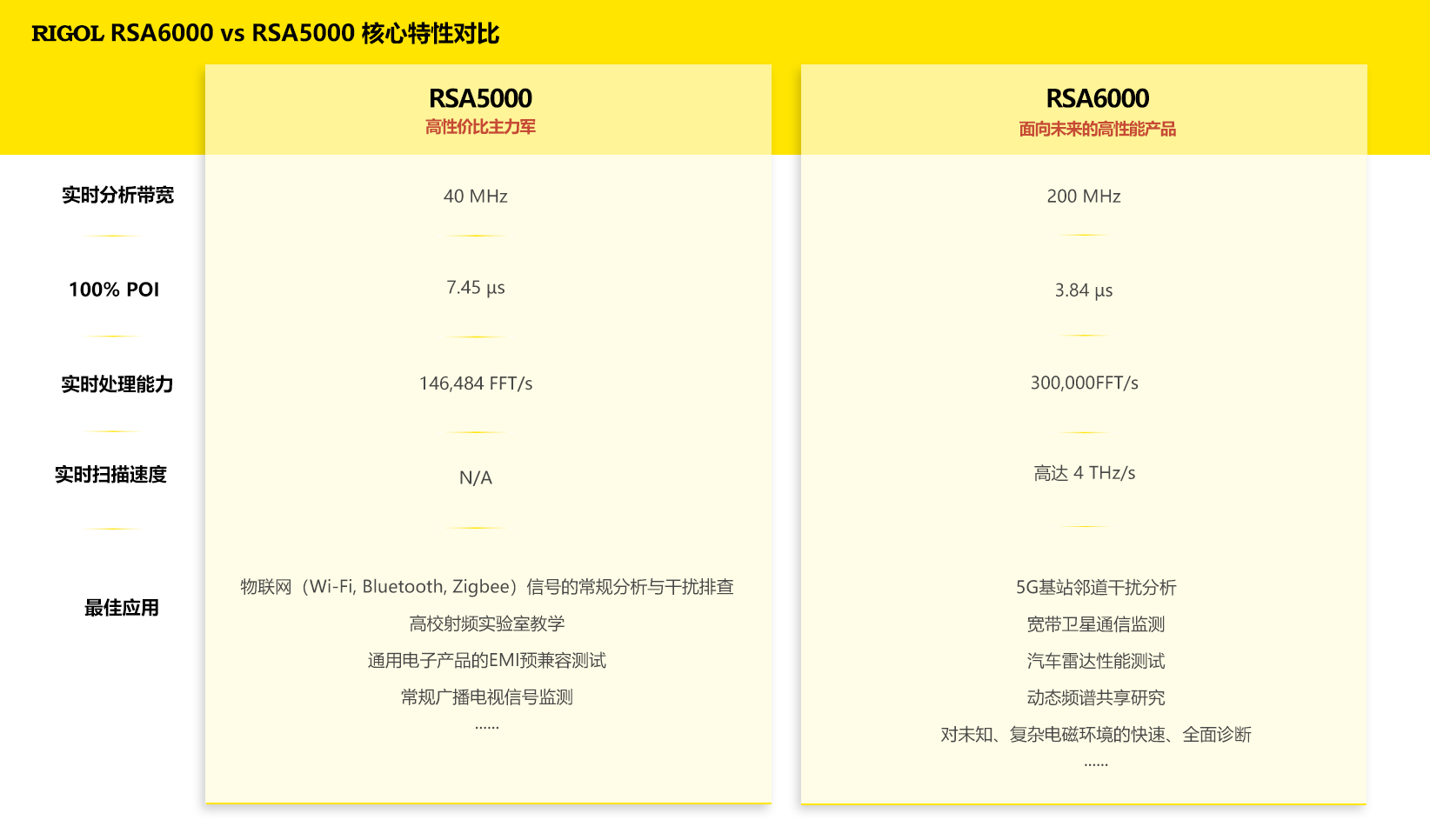 对比上一代RSA5000系列,它不仅是一次简单升级,更是一次全面的性能跃迁,将实时频谱分析的能力推向了新高度。