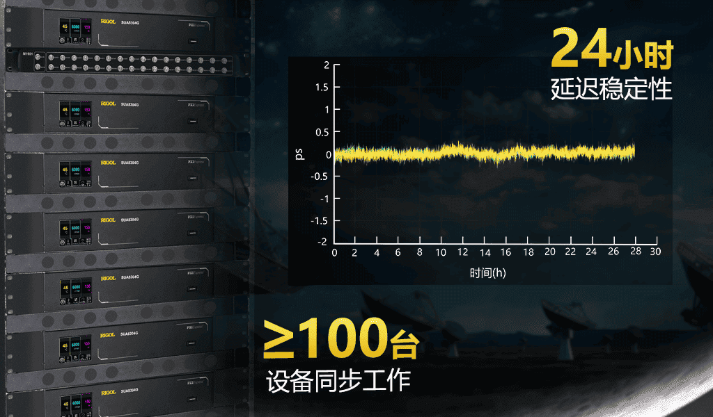 SUA8000系列数字收发仪支持超过100台设备的同步运行,具备优异的长时间同步稳定性。设备内通道间同步延时稳定性优于1ps,设备间通道间同步延时稳定性优于10ps,满足阵列化收发系统7x24小时连续运行需求。卓越的同步性能显著提升了系统协同精度,为大规模分布式收发应用提供强大的技术支撑。