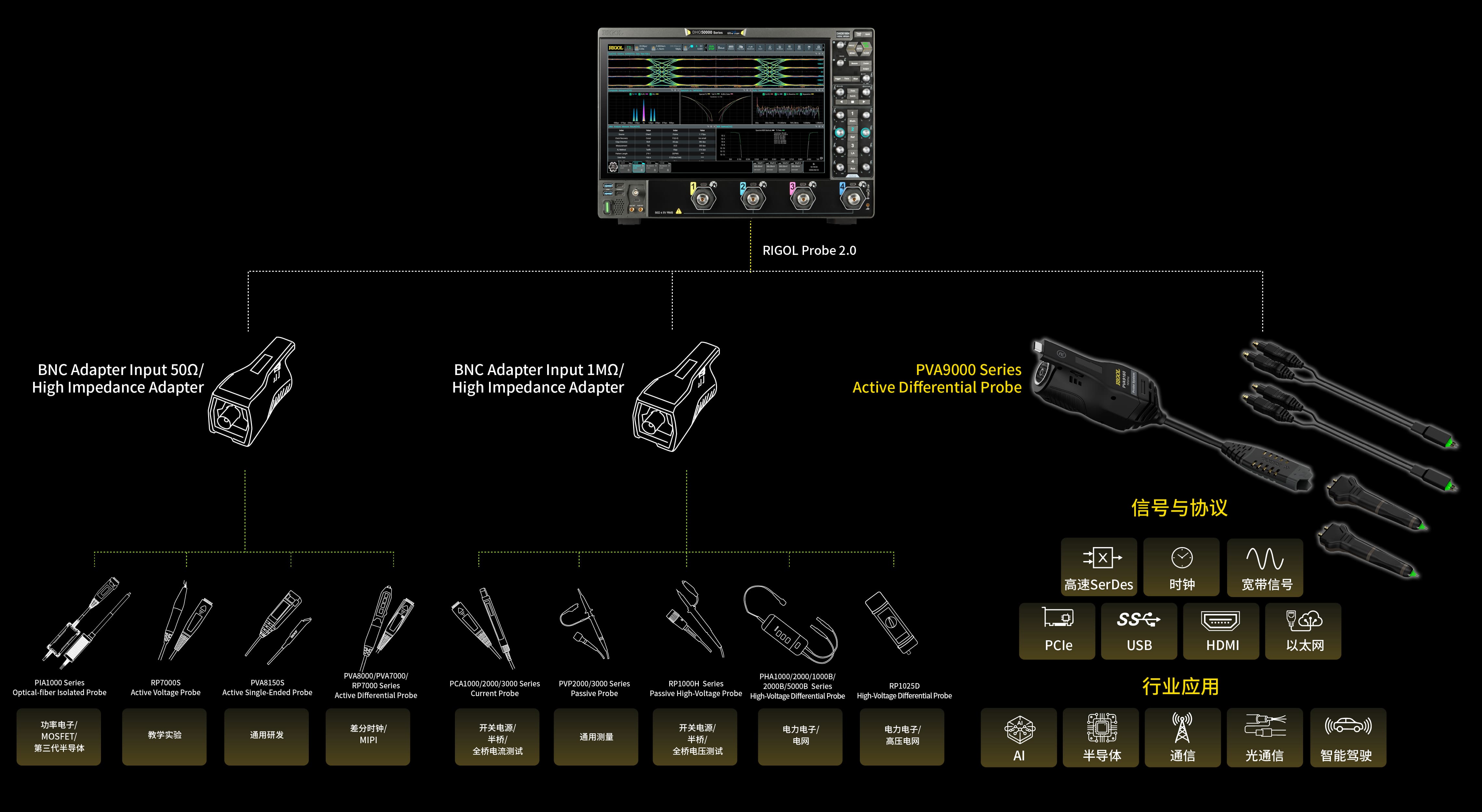 构筑覆盖全场景的繁荣探头生态,为严苛的规范验证提供无限可能。家族旗舰 PVA9000 系列高带宽差分探头,以不妥协的 16GHz 顶配带宽与新一代主机实现完美适配。主机与探头的强强联手,彻底打通端到端的全带宽传输链路,成为攻克 PCIe、USB 等高速总线一致性测试的卓越利器,让各类复杂的采集分析无懈可击。