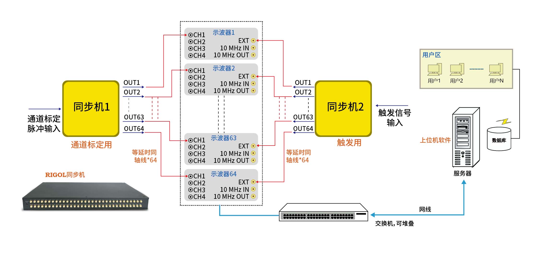 利用配套的同步机,可以提供多机同步触发方案,且可以实现现场校准,保证多通道同步观测要求。